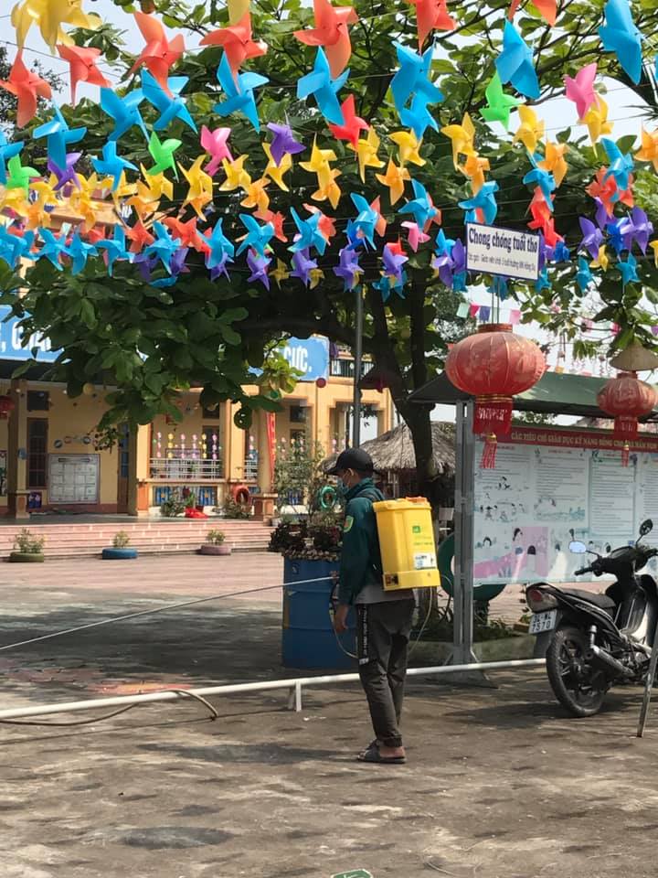 Dưới đây là một số hình ảnh CB, GV, NV Nhà trường đã vệ sinh, khử trùng để chào đón các Bé đi học trở lại: